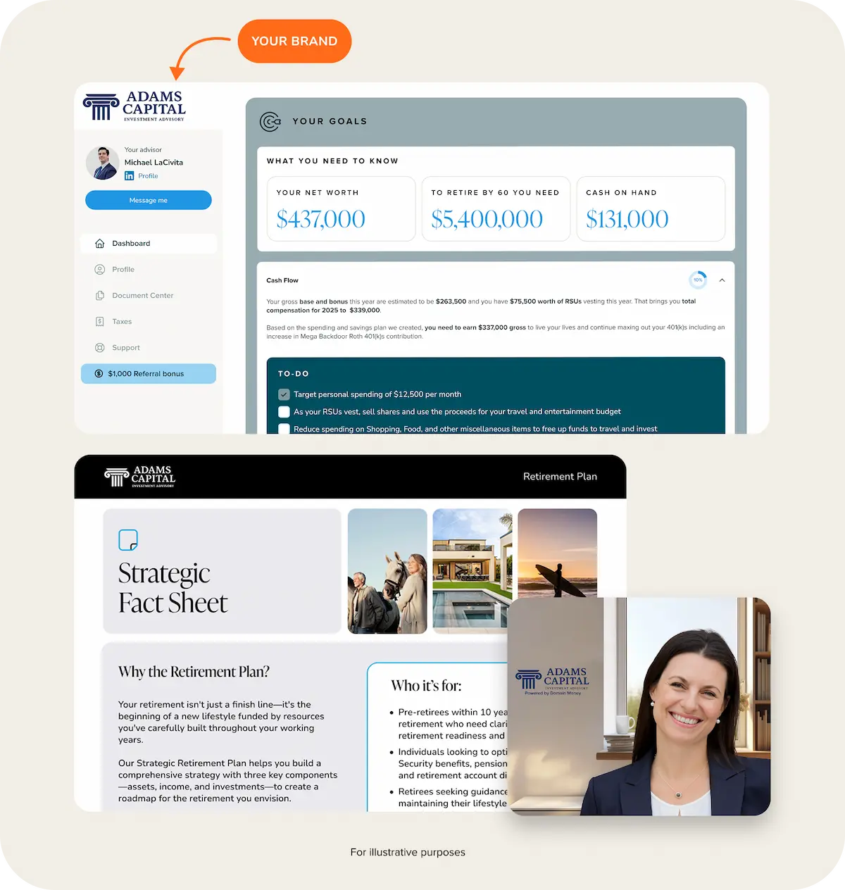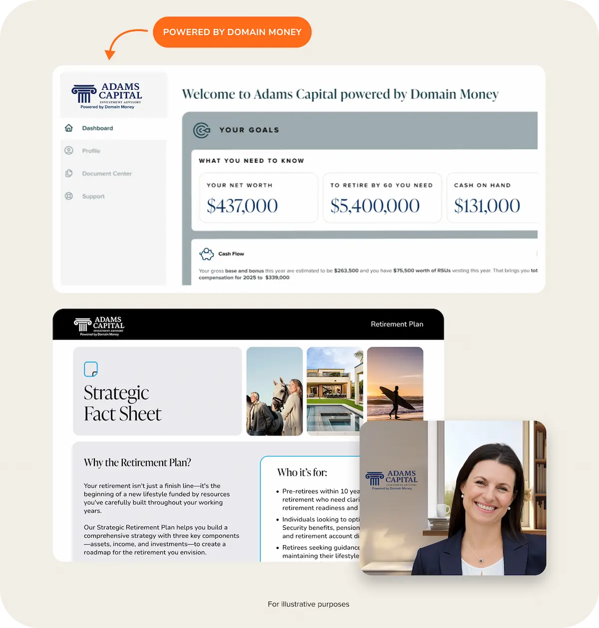 Offer our flat fee, annual planning solution to your clients under your brand, powered by Domain Money. This approach enables your firm to serve clients with an integrated brand experience.